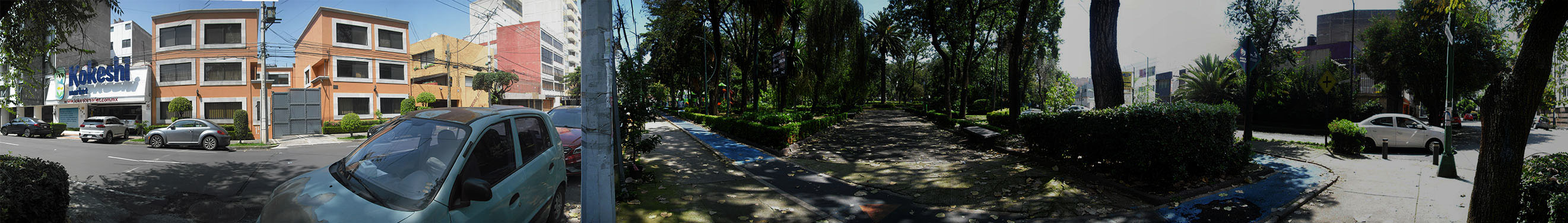 En esta vista 360 de la esquina de la calle Amores y calle Jardín Pascual Ortiz Rubio, calle que abarca sólo la cuadra del parque empezando desde esta esquina y acabando en Gabriel Mancera