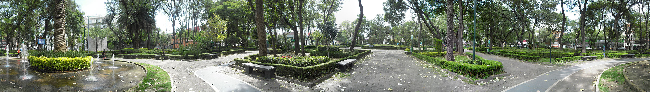 También en esta vista se llega apreciar la esquina de Félix Cuevas y Gabriel Mancera, El monumento a Manuel Gómez Morín y la fuente central del parque.